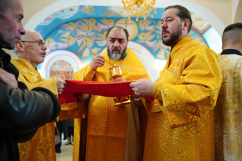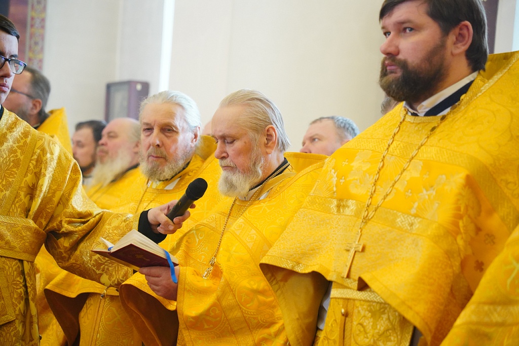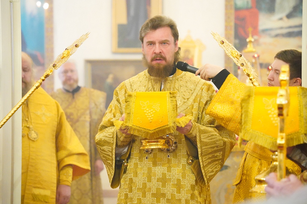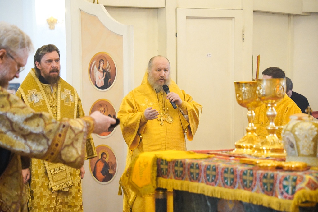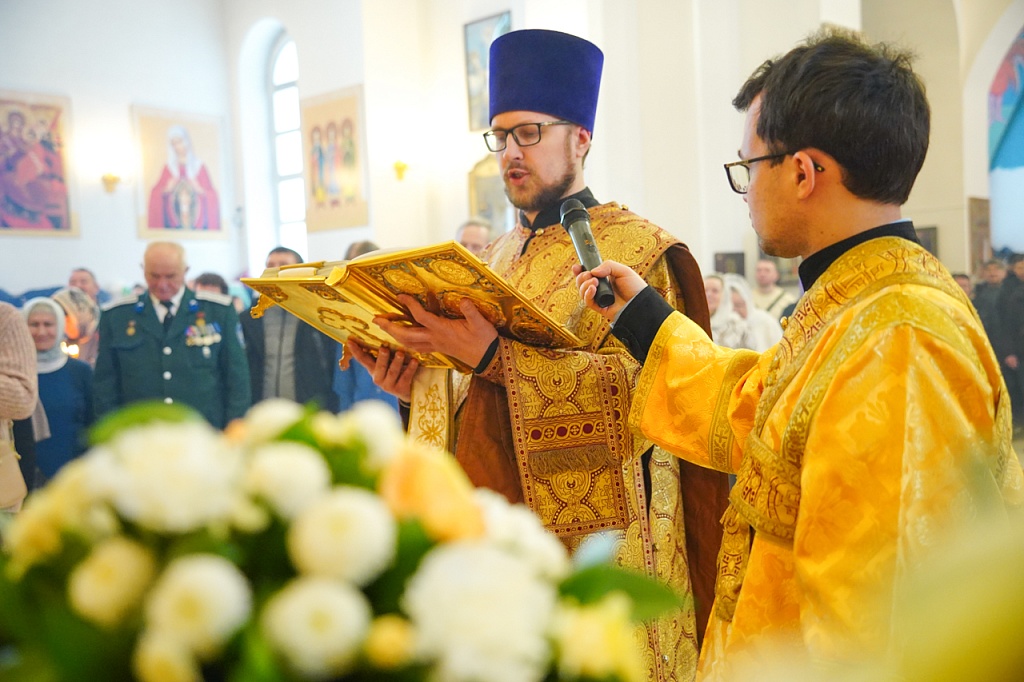 За богослужением был прочитан отрывок из Евангелия от Матфея (Мф.6:1-13), в котором Иисус Христос учит не творить напоказ милостыни и не молиться ради получения похвалы от людей. Господь учит, как правильно молиться, предлагая в образец молитву «Отче наш».