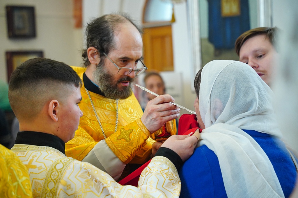 Также за Литургией был прочитан отрывок из Евангелия от Матфея (Мф.11:27-30), в котором Иисус Христос призывает труждающихся и обремененных прийти к Нему и обещает их успокоить. Он кроток и смирен сердцем, Его иго – благо, и бремя Его – легко.