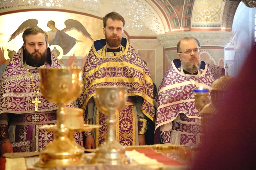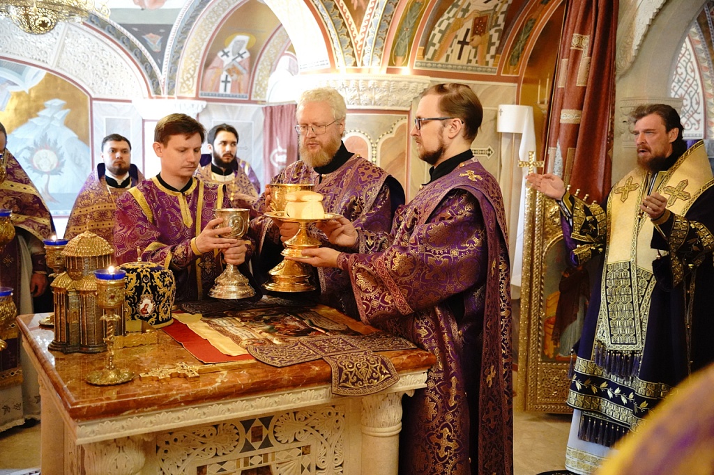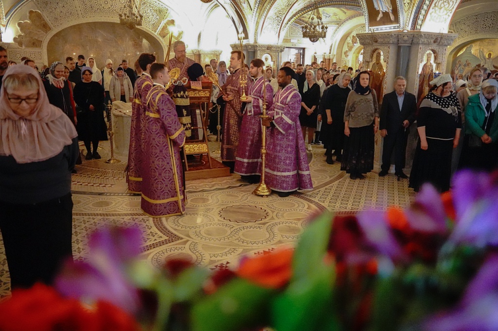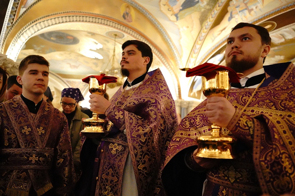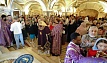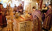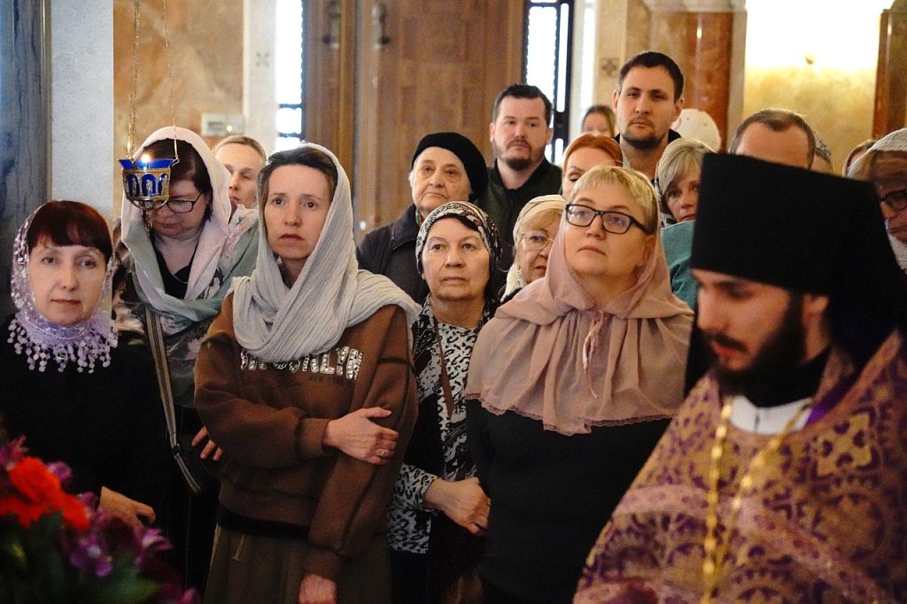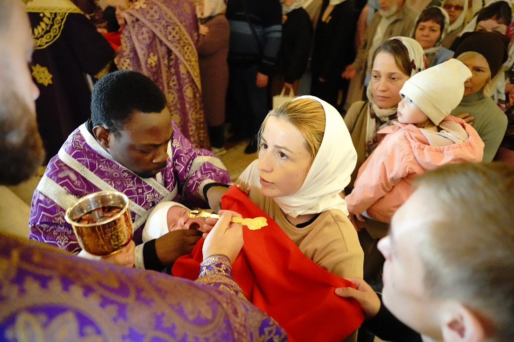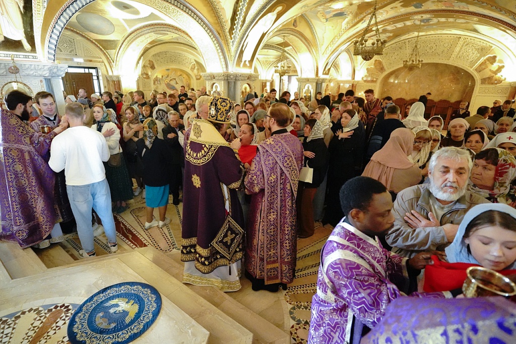 В этот день православные христиане стремятся причаститься Святых Христовых Таин. В проповеди митрополит Алексий поздравил прихожан с принятием Святых и Животворящих Христовых Таин.