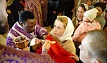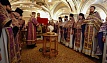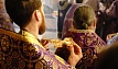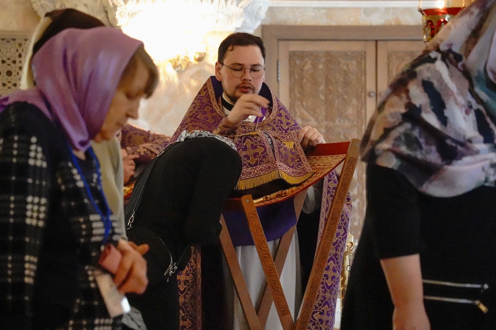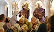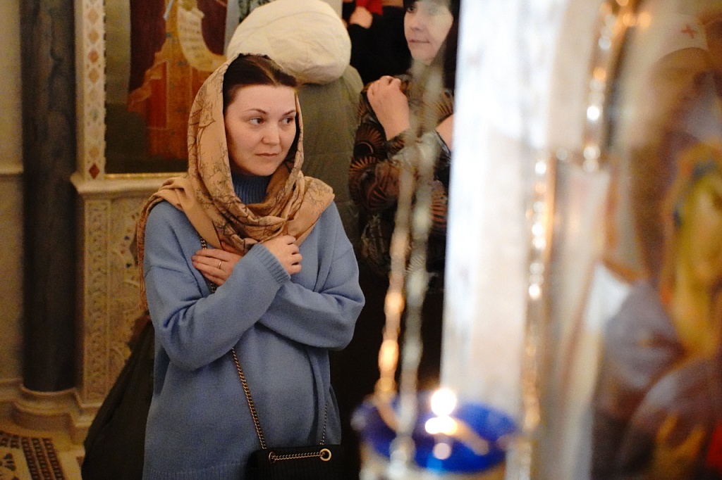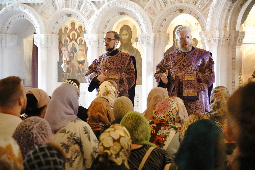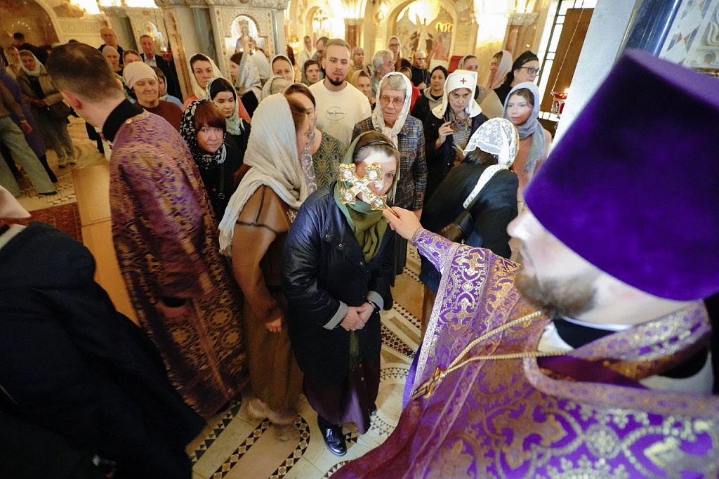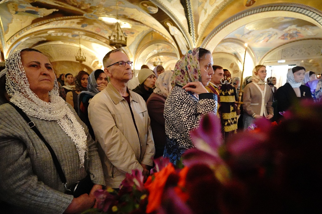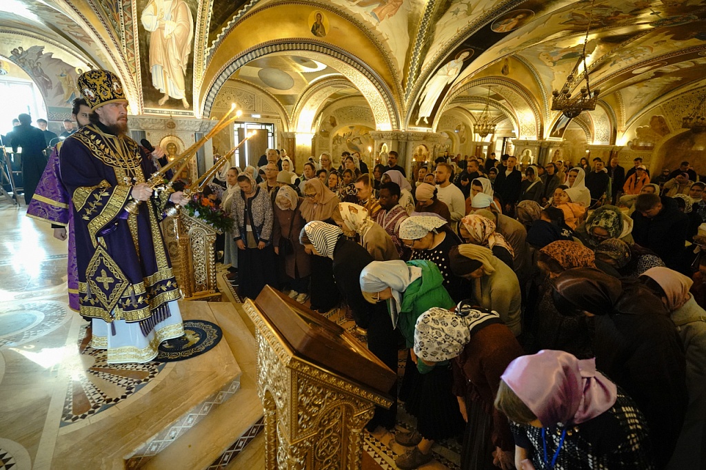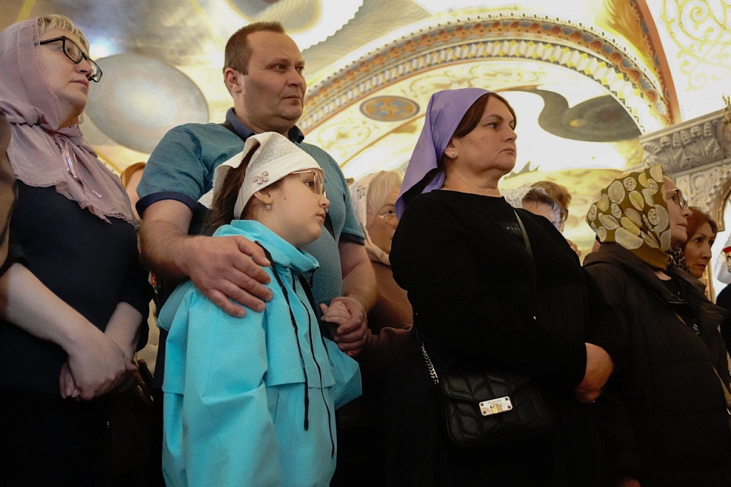 В этот день православные христиане стремятся причаститься Святых Христовых Таин. В проповеди митрополит Алексий поздравил прихожан с принятием Святых и Животворящих Христовых Таин.