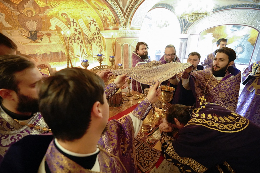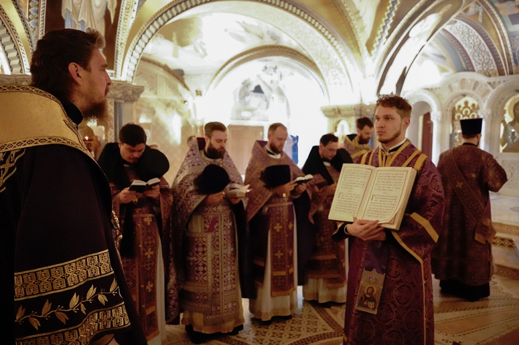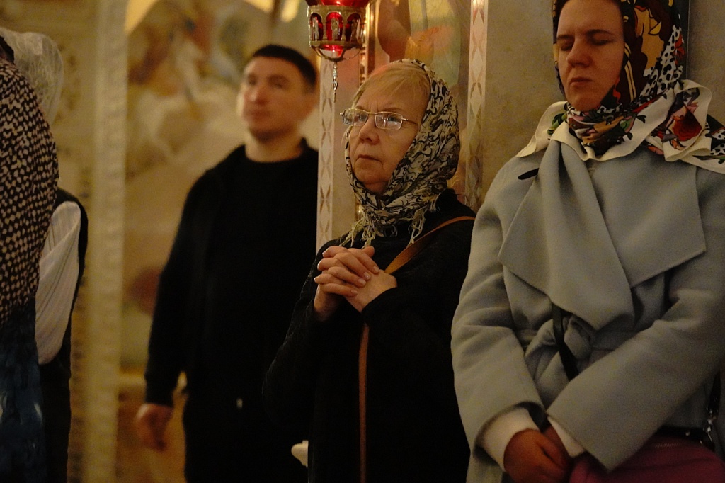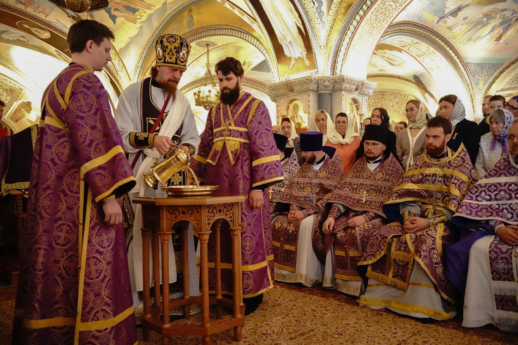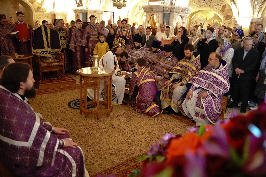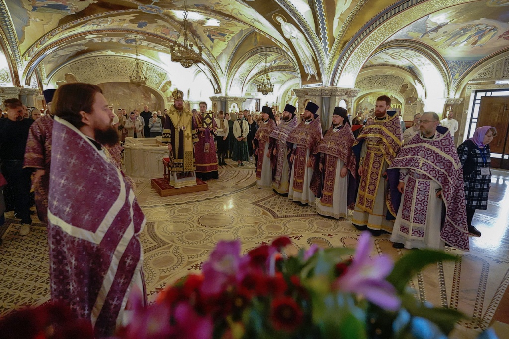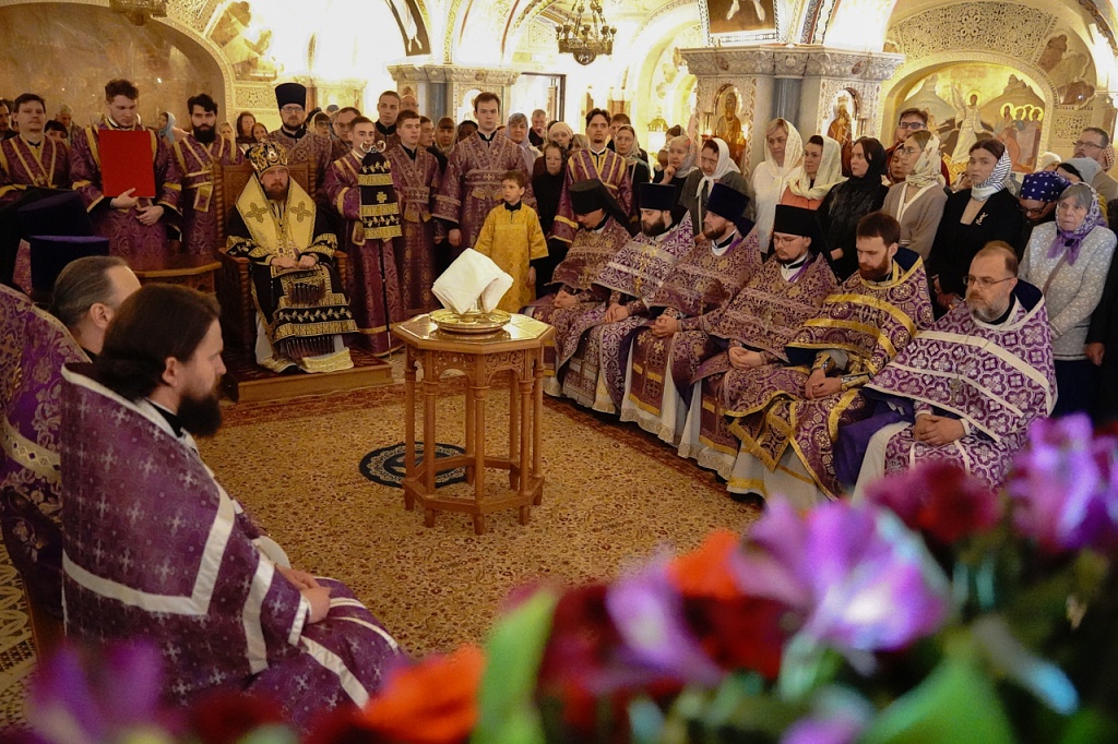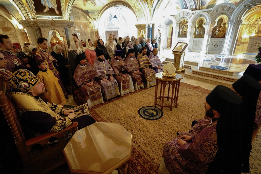 В завершение службы Великого Четверга митрополит Алексий и духовенство прочитали благодарственные молитвы ко Святому Причащению.