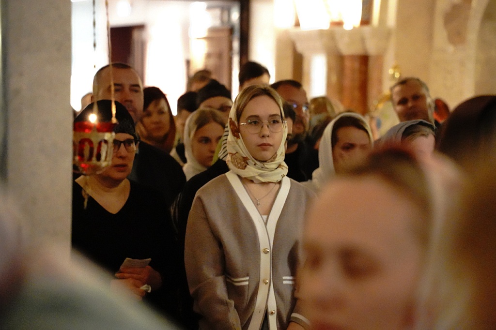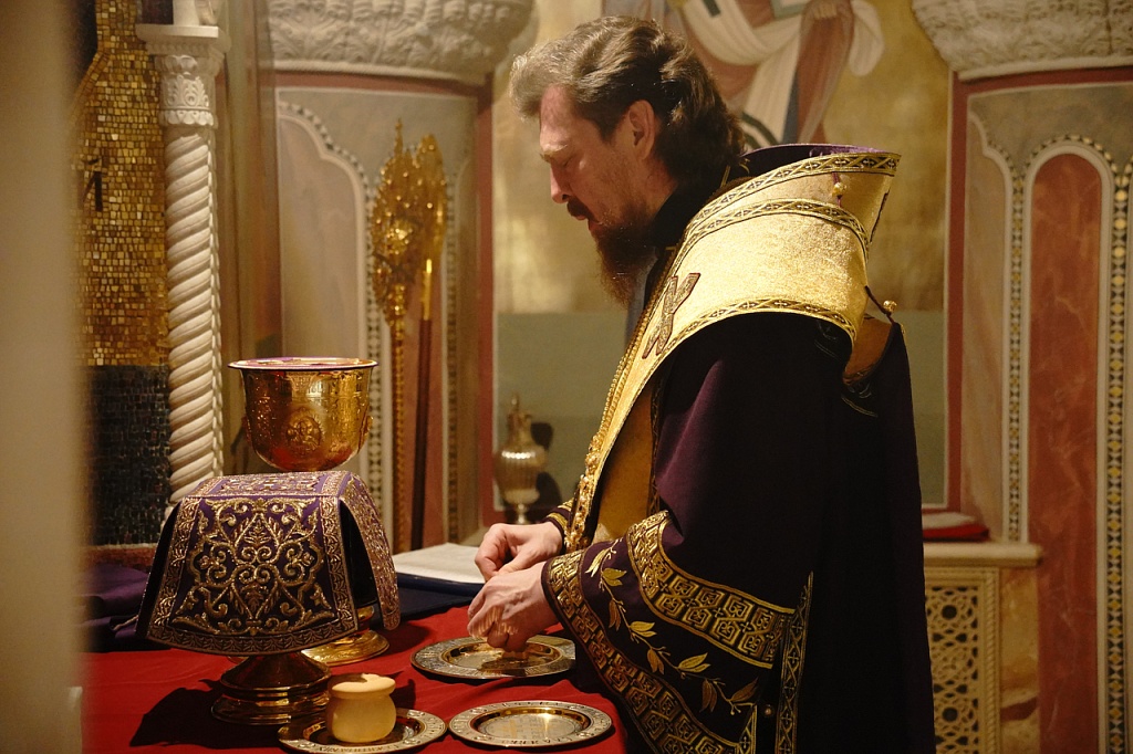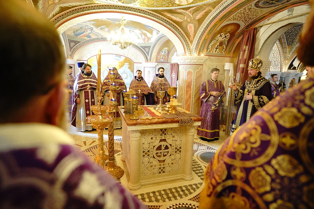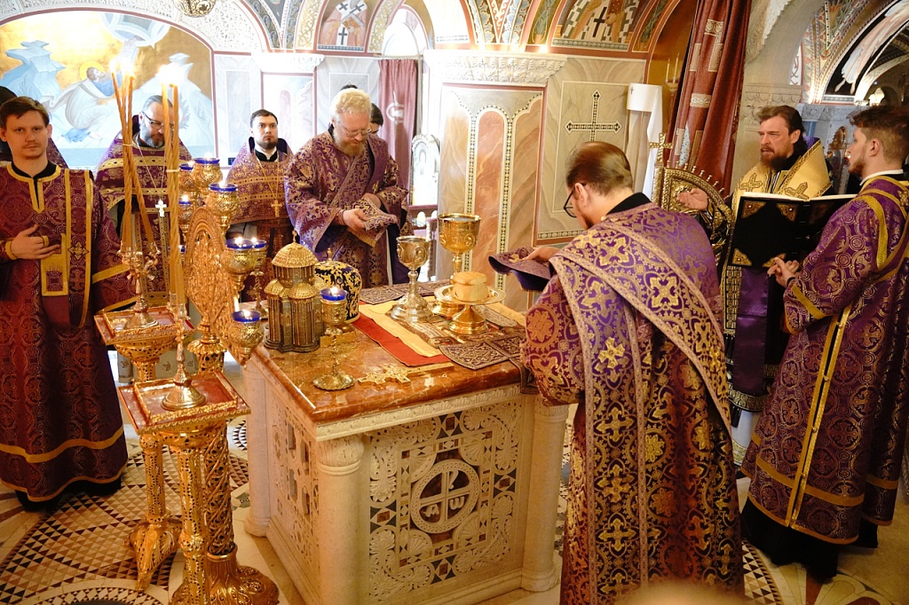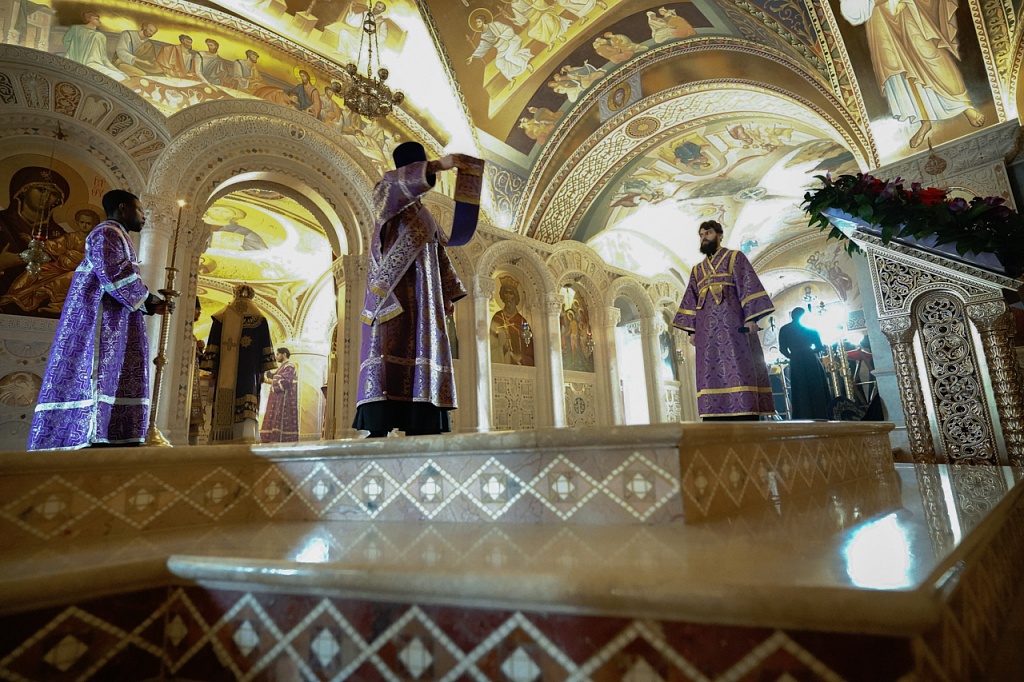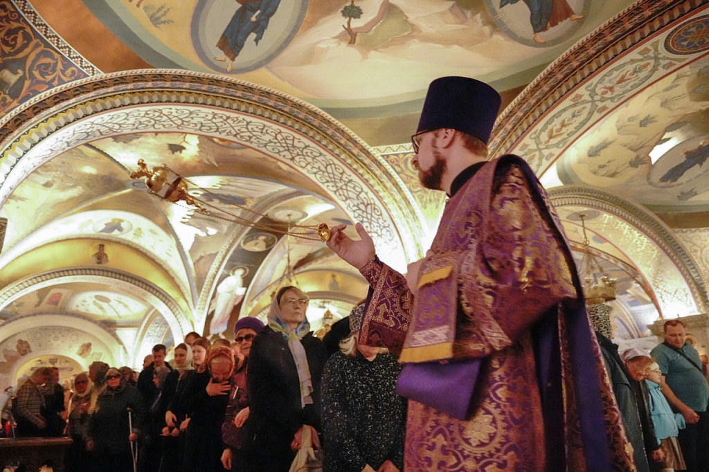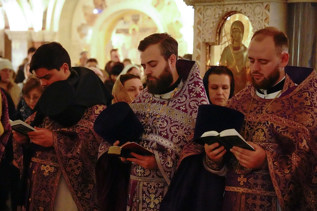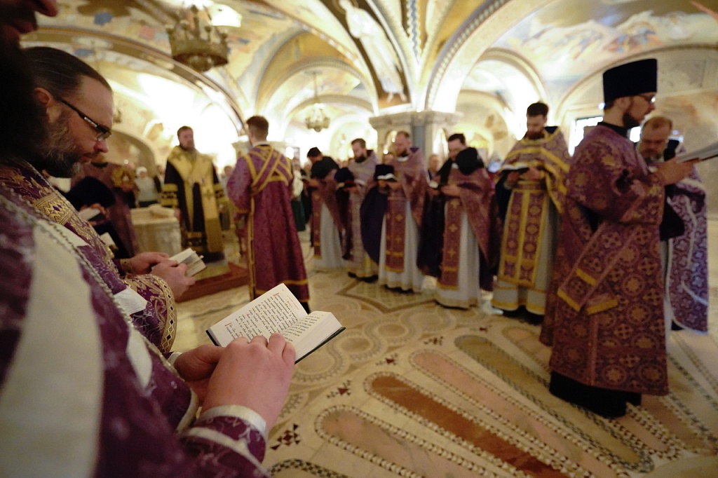 В завершение службы Великого Четверга митрополит Алексий и духовенство прочитали благодарственные молитвы ко Святому Причащению.