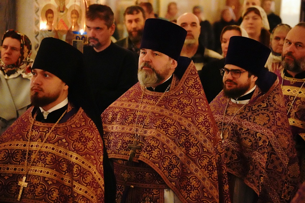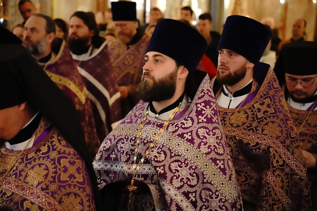 Правящему архиерею сослужили клирики кафедрального собора и челябинских храмов. Песнопения службы исполнил Архиерейский мужской хор под управлением регента Александра Хакимова.