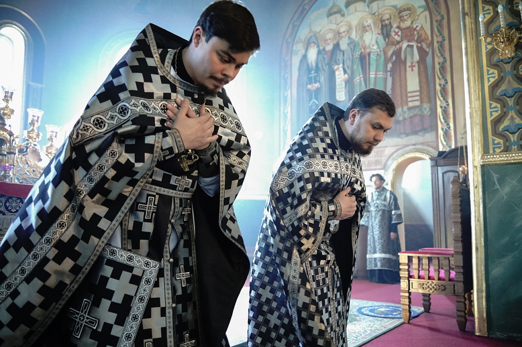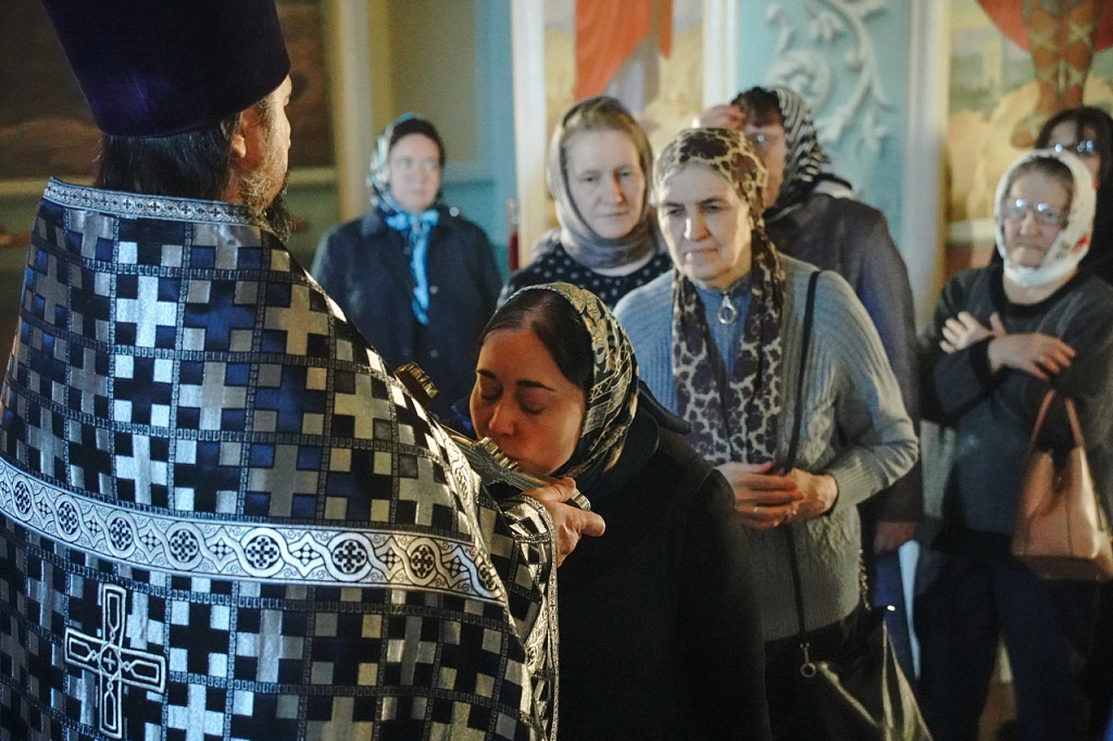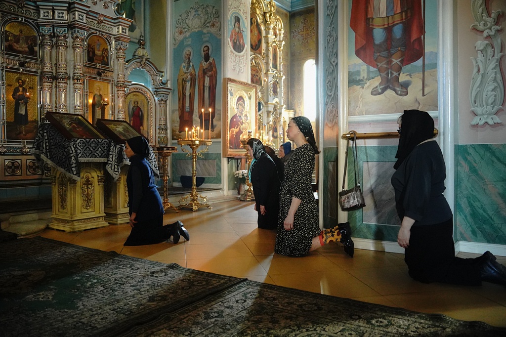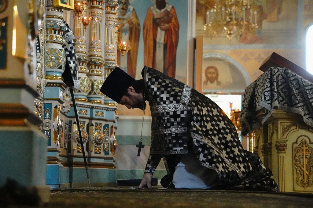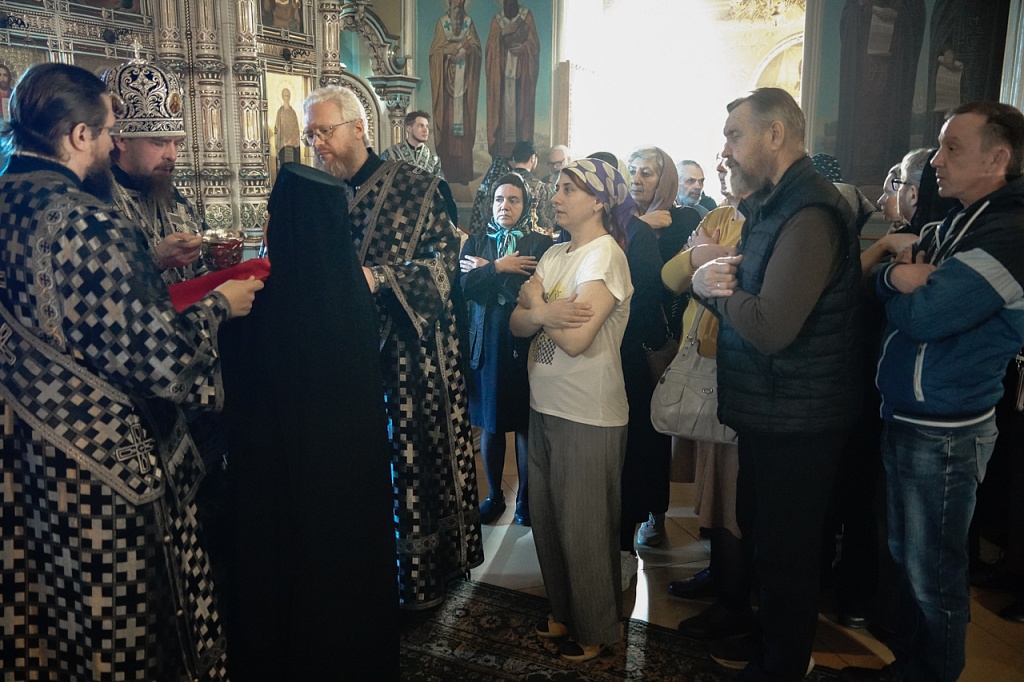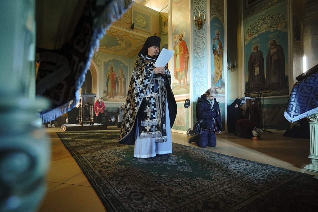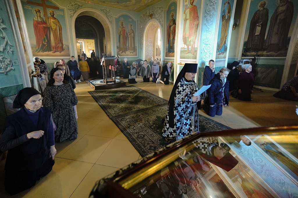 В конце богослужения митрополит Алексий, духовенство и прихожане в последний раз этим постом совершили молитву преподобного Ефрема Сирина.