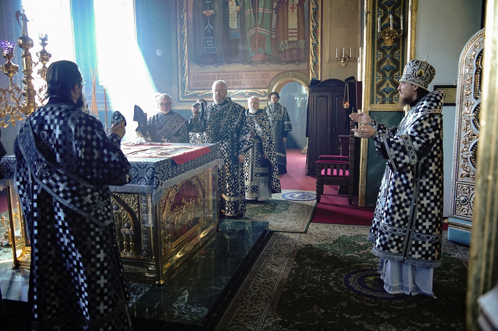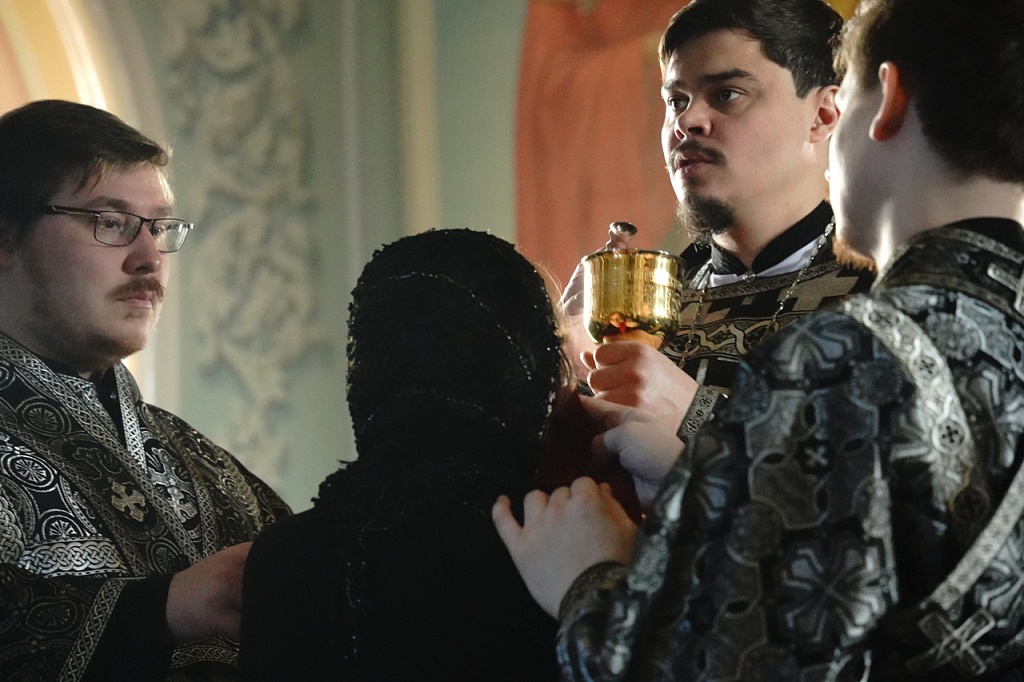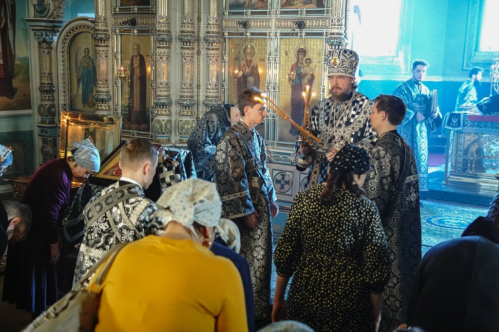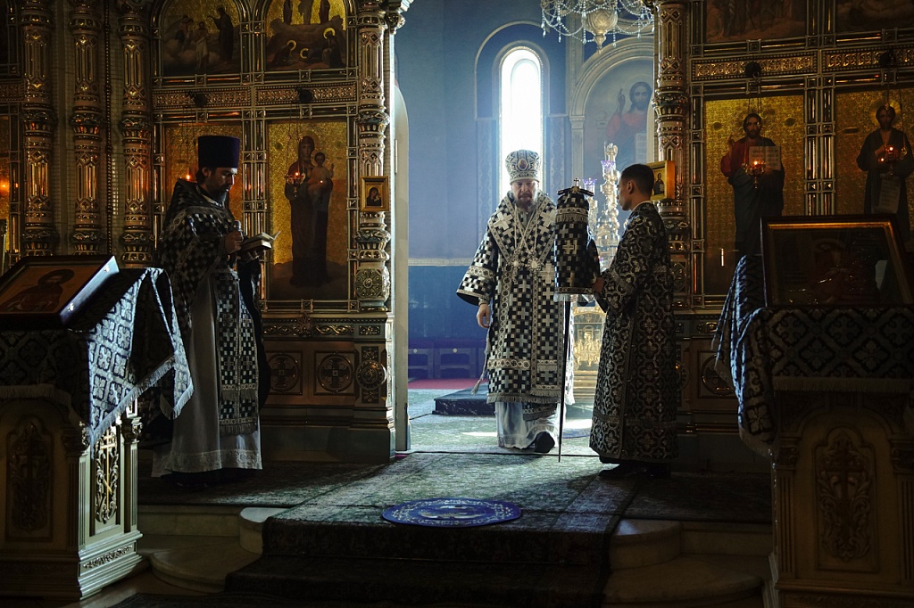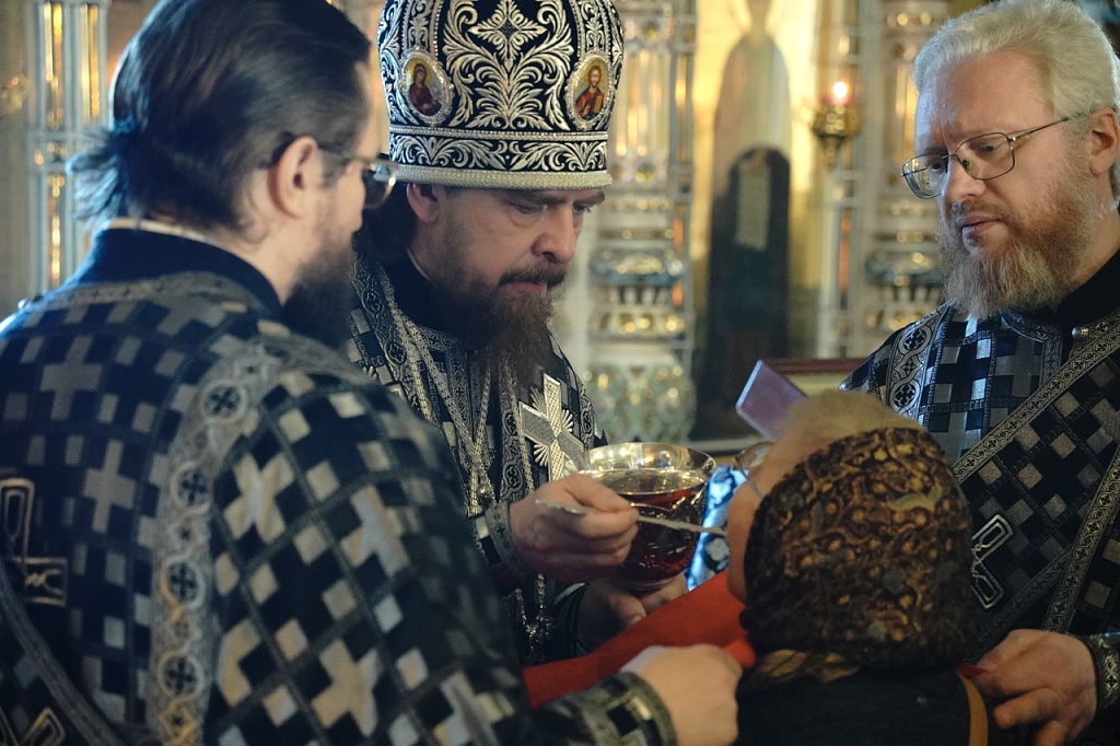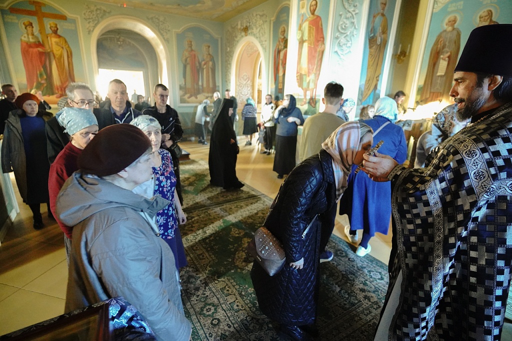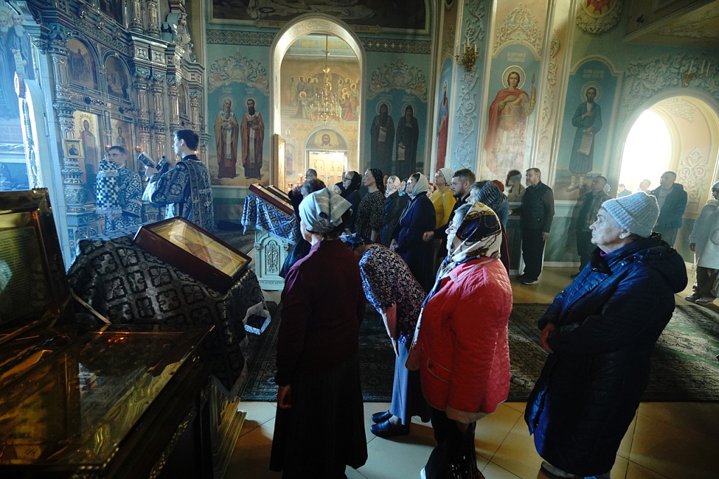 В конце богослужения митрополит Алексий, духовенство и прихожане в последний раз этим постом совершили молитву преподобного Ефрема Сирина.