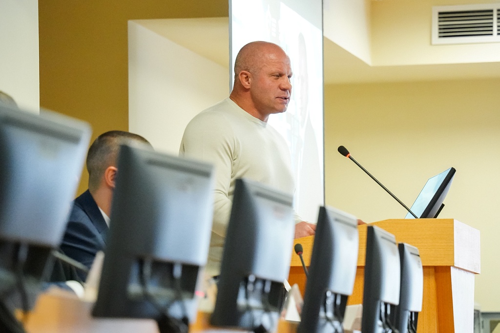 Легендарный спортсмен, многократный чемпион мира по смешанным единоборствам, встретился с горожанами в рамках регионального проекта «Вера и спорт», который реализуется в Челябинской митрополии по благословению митрополита Челябинского и Миасского Алексия.