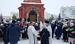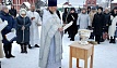 Часть богослужения по традиции провели на улице, где освятили воду в четырех больших емкостях.