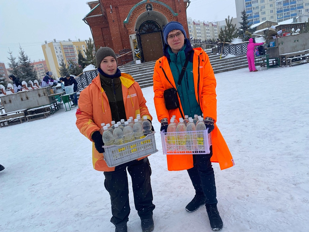 Раздача святой воды продолжалась с утра до 19 часов. В этом деле помогали волонтеры храма, движения «Волонтеры Копейска», Общественного молодежного Совета, местного отделения Движения Первых, «Молодой Гвардии Единой России» и штаба «Мы вместе».