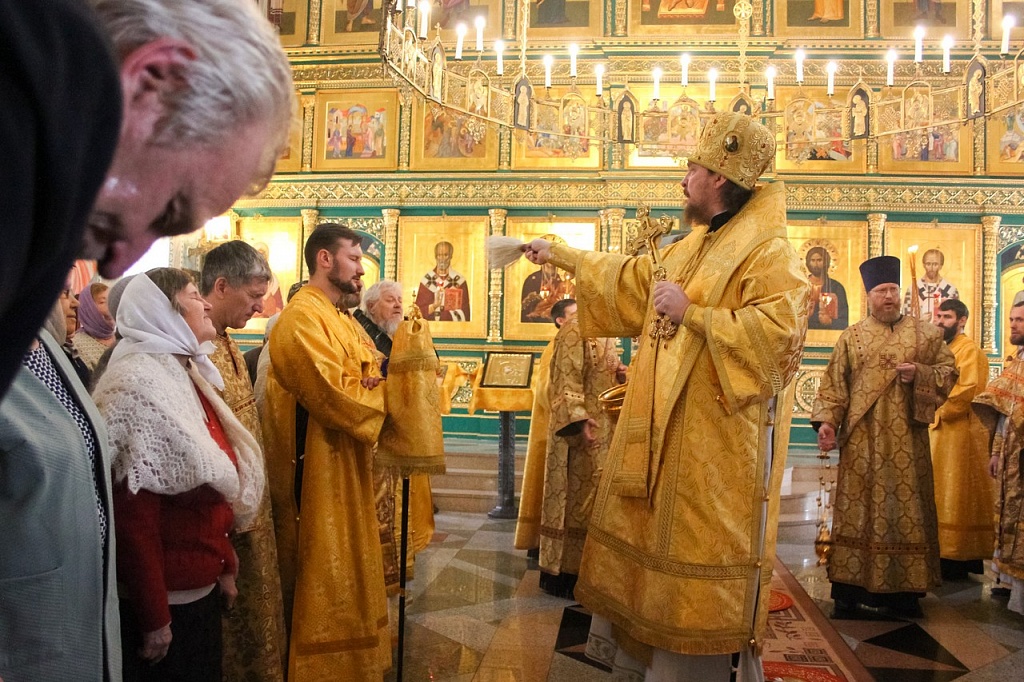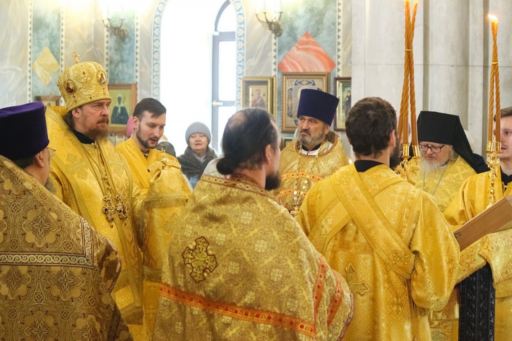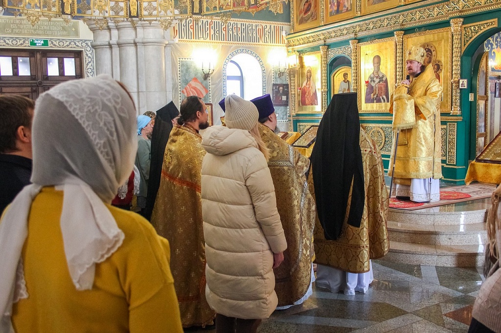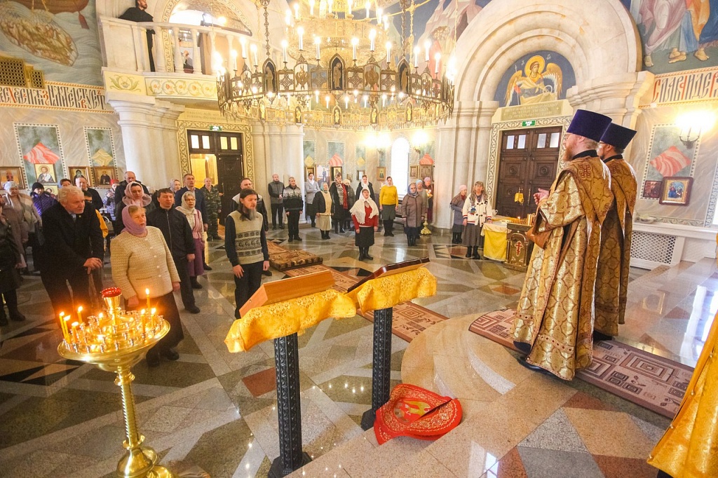 В своей проповеди владыка Алексий напомнил эпизод из жития святителя, подтверждающий важность принесения покаяния не только за свои поступки, но и за грехи родных. Святой Иоанн Златоуст скончался в 407 году в городе Команы. Перенесение мощей святителя из Коман в столицу Византии произошло лишь спустя 30 лет после его кончины. По просьбам простого народа, любившего Иоанна Златоуста, вернуть его мощи в Константинополь императора Феодосия попросил Патриарх Прокл. Правитель согласился, но посланные им люди никак не могли поднять святые мощи.