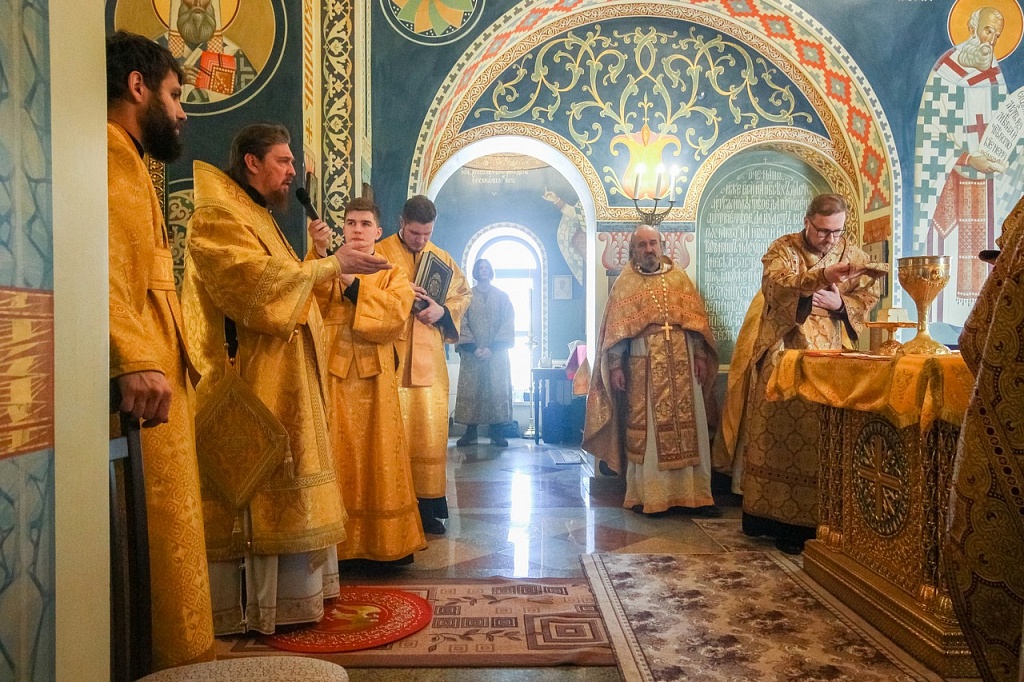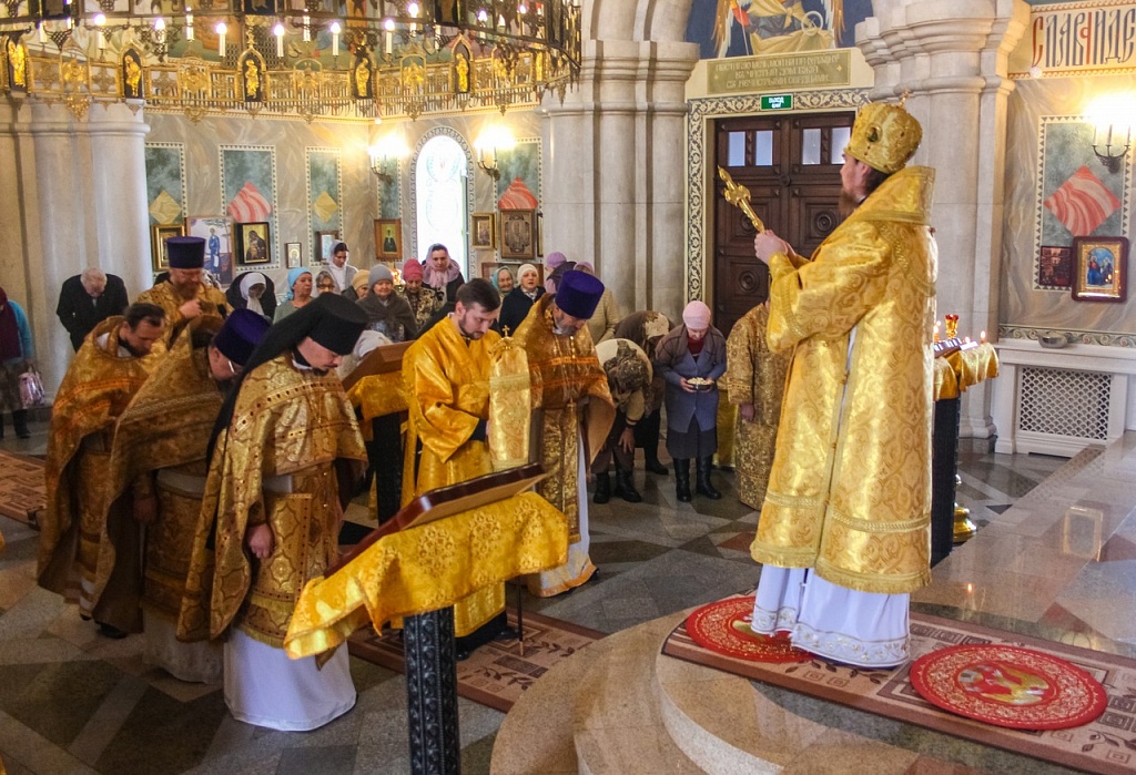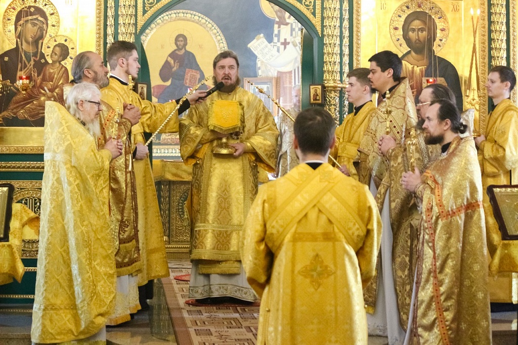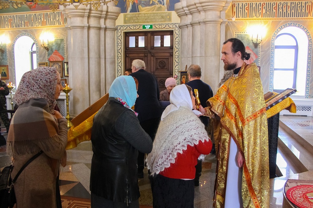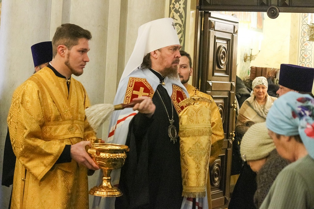 В своей проповеди владыка Алексий напомнил эпизод из жития святителя, подтверждающий важность принесения покаяния не только за свои поступки, но и за грехи родных. Святой Иоанн Златоуст скончался в 407 году в городе Команы. Перенесение мощей святителя из Коман в столицу Византии произошло лишь спустя 30 лет после его кончины. По просьбам простого народа, любившего Иоанна Златоуста, вернуть его мощи в Константинополь императора Феодосия попросил Патриарх Прокл. Правитель согласился, но посланные им люди никак не могли поднять святые мощи.