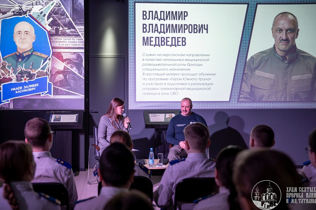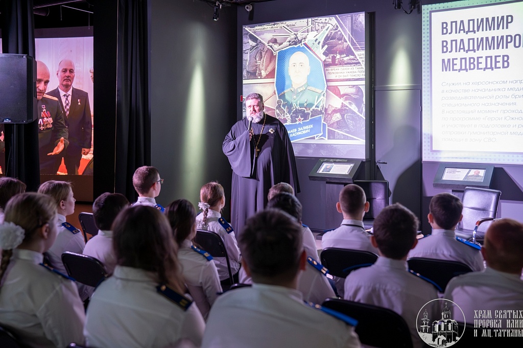 Особое впечатление на кадетов произвела беседа с начальником медицинской роты Владимиром Медведевым, который поделился реальными и очень личными историями, рассказал о самоотверженности военных медиков и ценности каждой спасенной жизни.