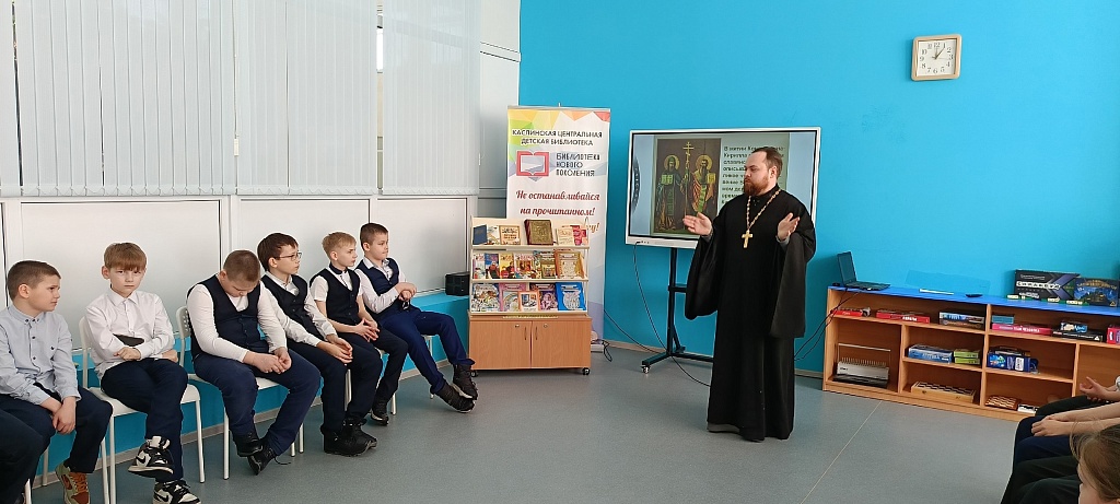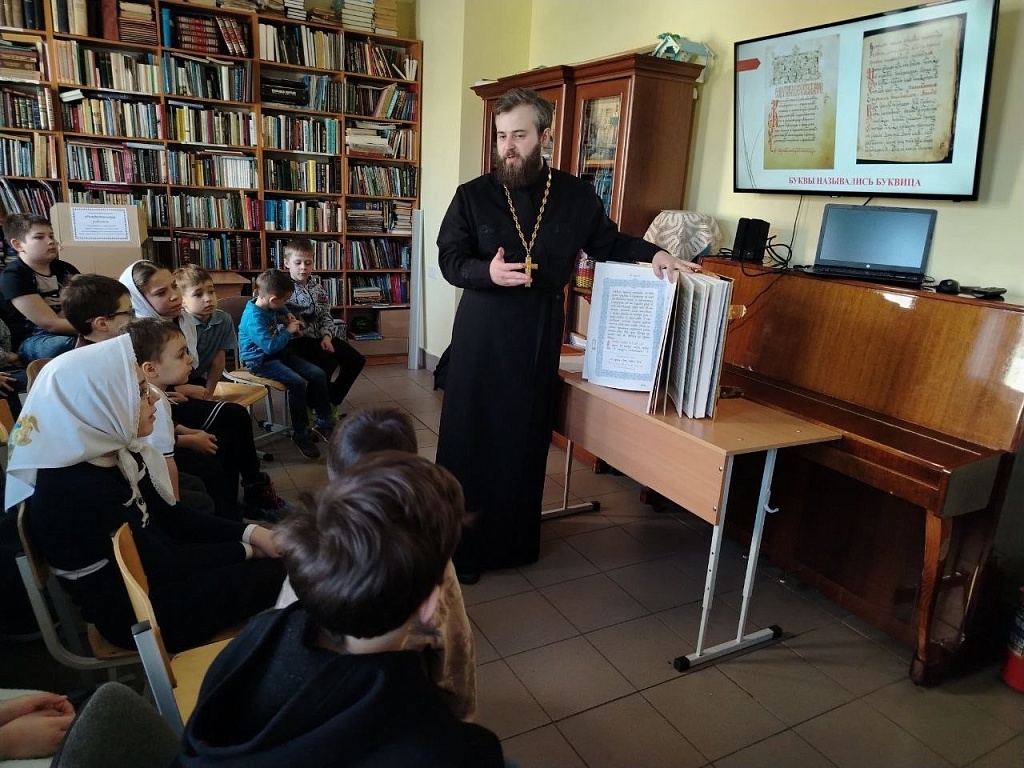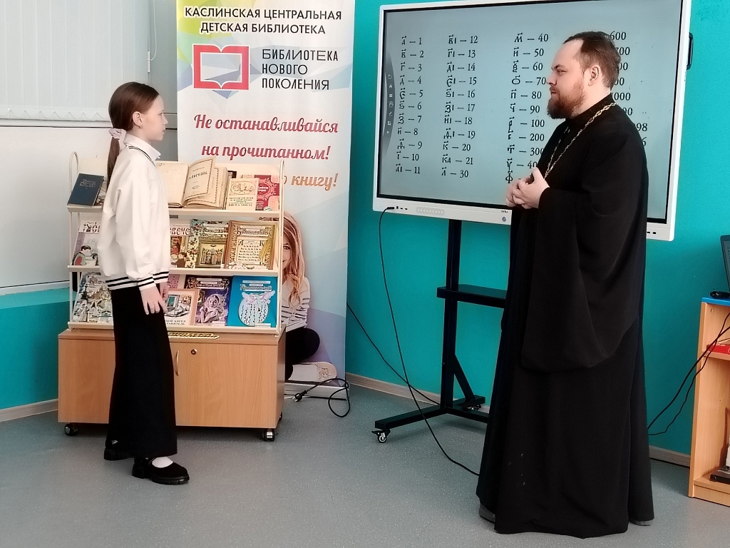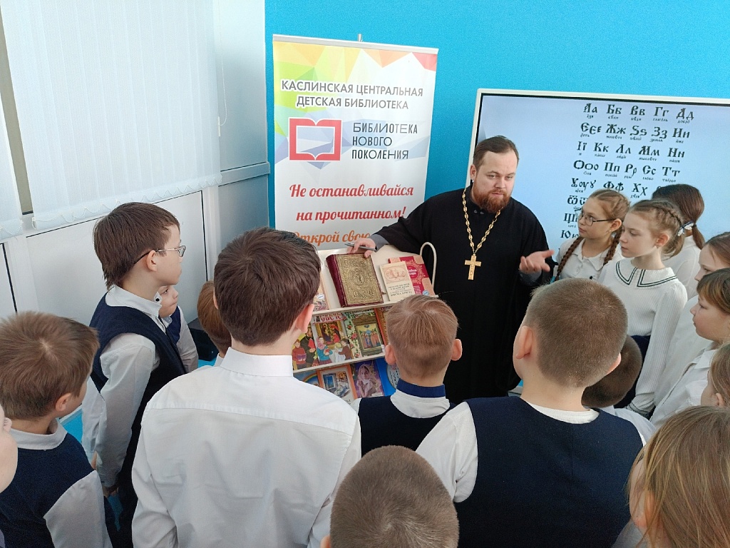 В центральной детской библиотеке города Касли клирик Вознесенского храма иерей Дмитрий Кульков познакомил детей с церковнославянским языком, историей книгопечатания и подвигом святых братьев Кирилла и Мефодия. Дети пробовали читать Евангелие, знакомились с дореволюционными буквами и цифрами, обсуждали книги и вели читательские дневники.
