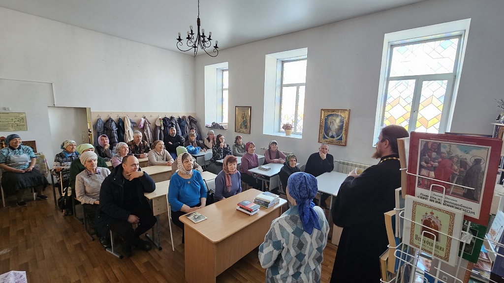 В Центре социального обслуживания населения Ленинского района Челябинска алтарник обители Константин Вечкилев побеседовал о появлении книгопечатания и необходимости правильно выбирать духовную литературу, показал старинные богослужебные книги и подарил новые издания.