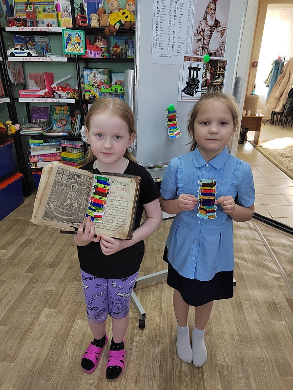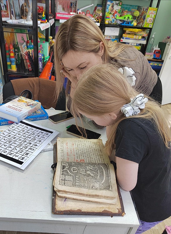Преподаватель воскресной группы храма Святителя Тихона, патриарха Московского, Ольга Мартенец провела урок в детском саду №25 поселка Красное Поле. Дети узнали об истории книги на Руси, первопечатнике Иване Фёдорове, исследовали современные и старинные книги, изучали славянский алфавит и цифры. Отдельный интерес вызвало знакомство с богослужебными книгами царской России.