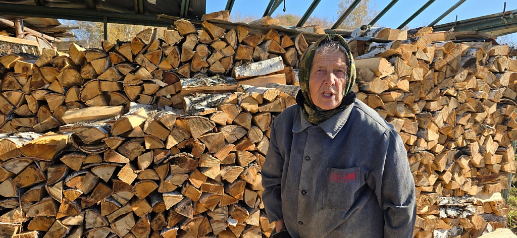Костяк прихода составляют четыре пожилые женщины – Екатерина, Татьяна и две Галины. Екатерину и Татьяну мы встретили за укладыванием поленницы. Шесть кубов дров руками этих женщин, которым уже за 60, аккуратно были сложены под навес.